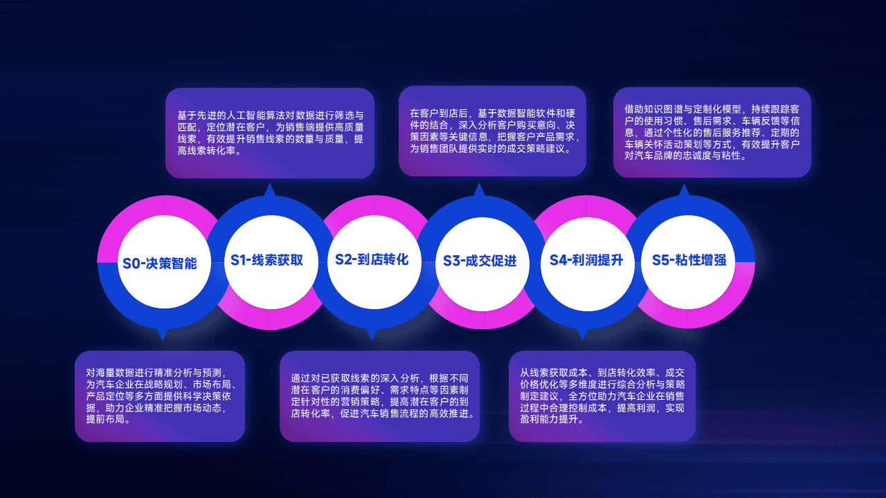 通过拓宽潜在客户来源、、、、优化线索分配并提高到店转化率,,,,以增强销售效率。。。同时,,利用线索数据不断优化分析模型,,有效提升转化率,,扩大营销影响力。。